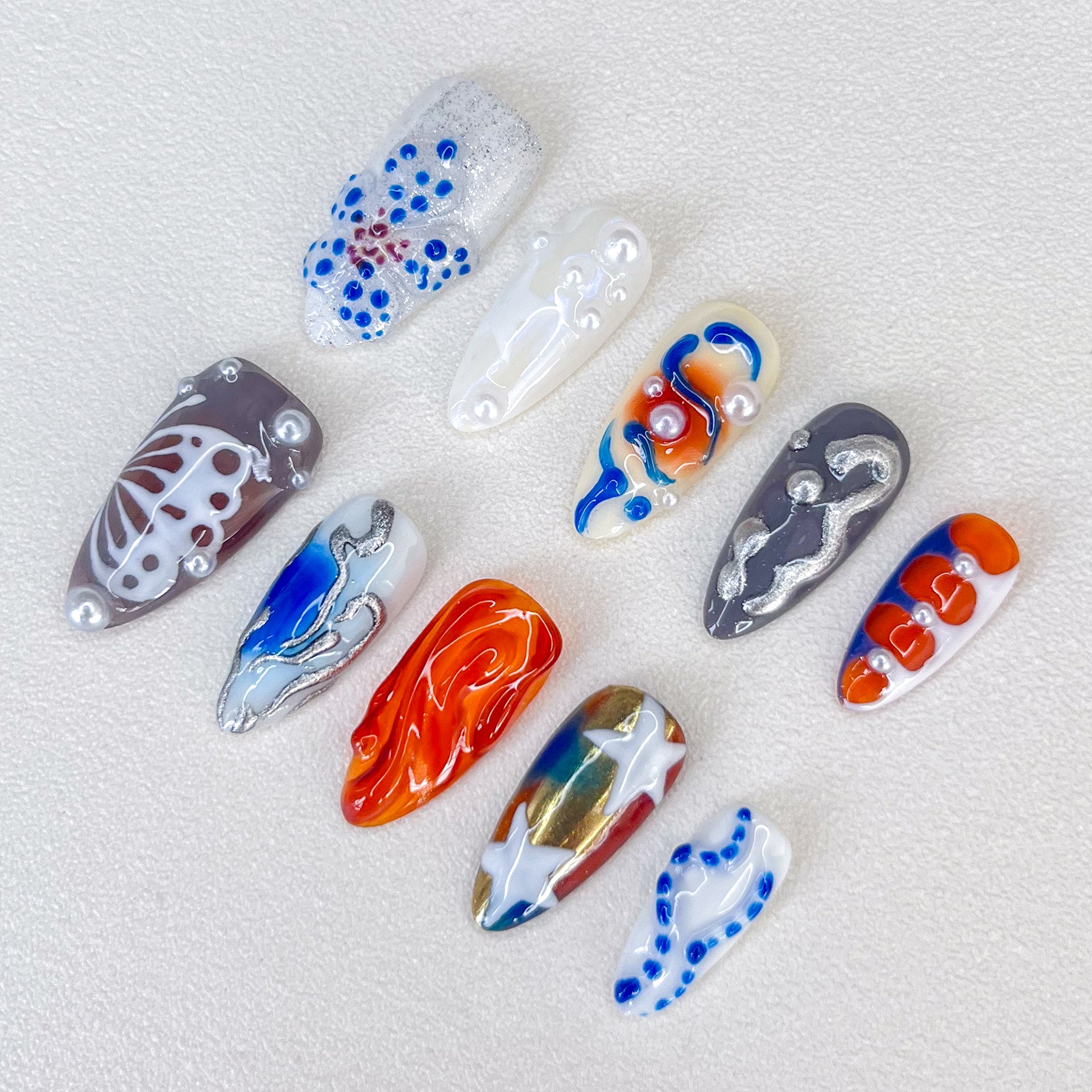 When applying, place the press-on about 2mm away from your cuticle, then press down and gently push back for a secure fit.