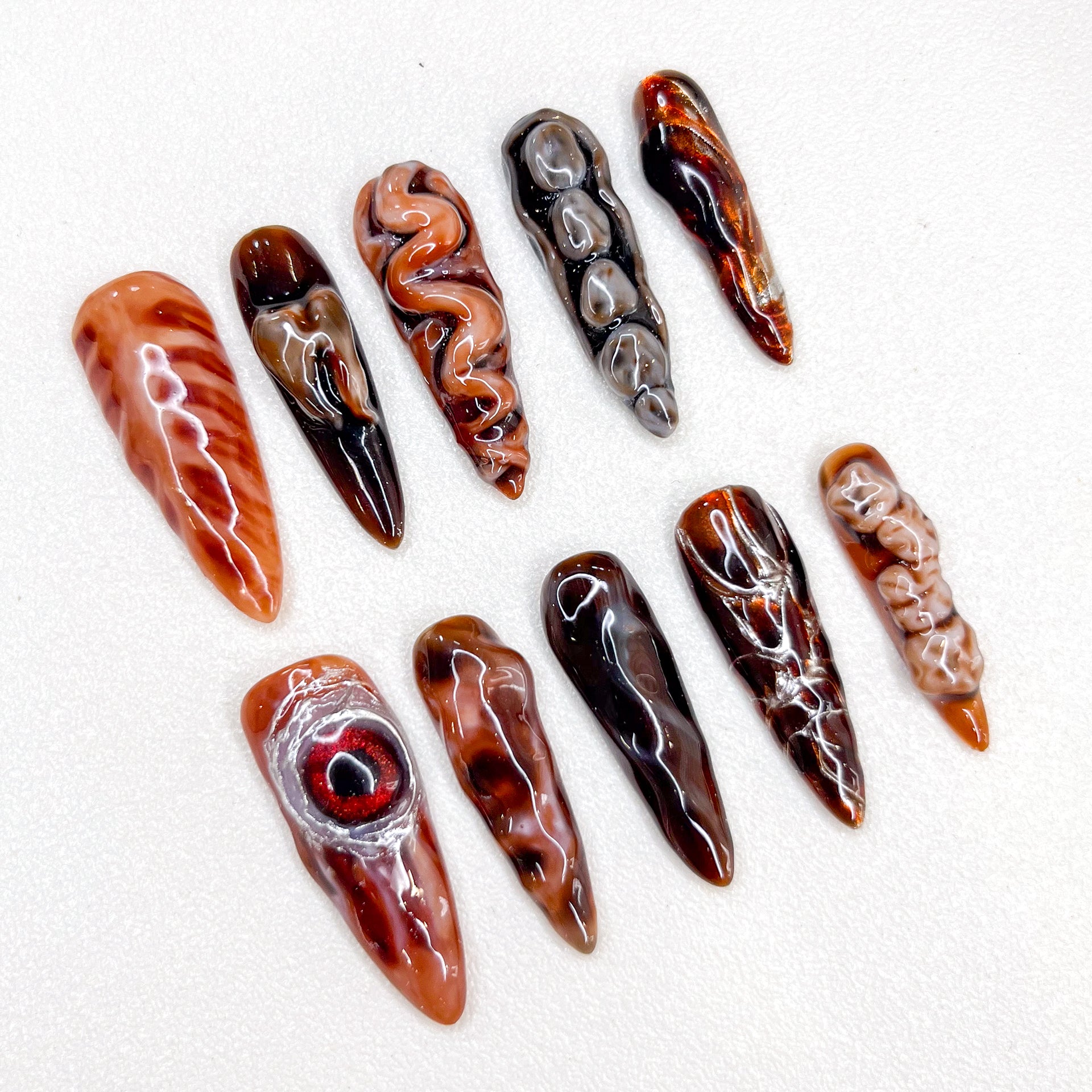 Design Concept: Dive into the chilling depths of Halloween with "Blood Guts Teeth," where the grotesque meets the bold. Perfect for those who dare to embrace the eerie side of beauty.