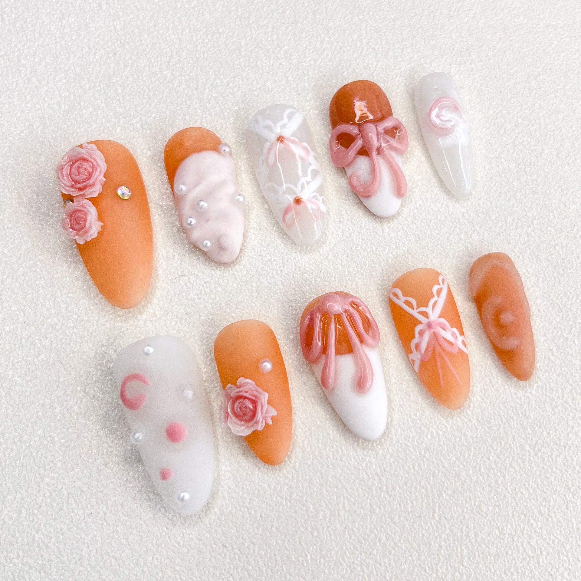 Design Concept: Embrace the dreamy charm of Coral Rose Reverie, where vivid coral hues blend seamlessly with delicate pink roses. This enchanting design evokes the warmth of a summer sunset and the elegance of blooming gardens, adding a touch of fantasy to your fingertips.