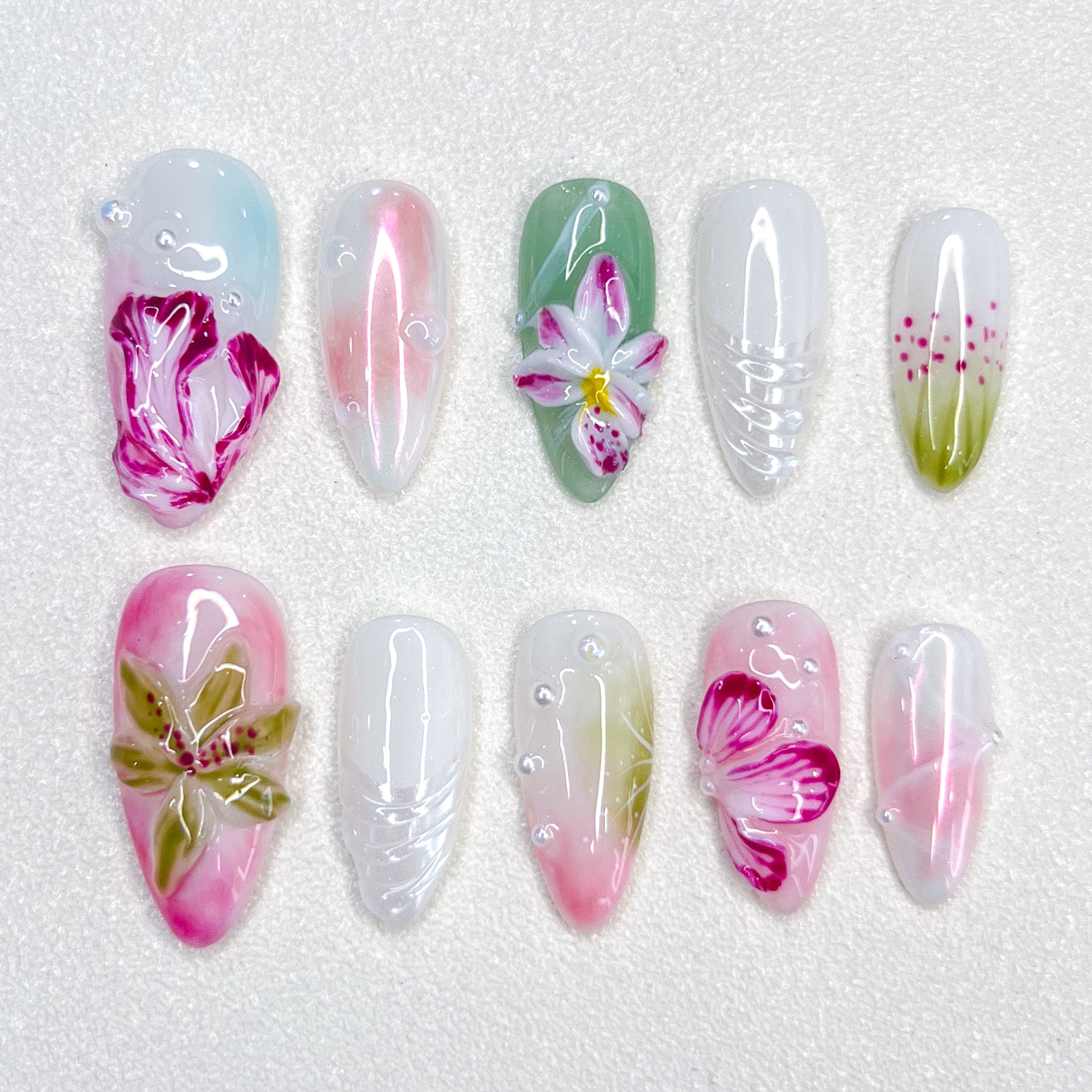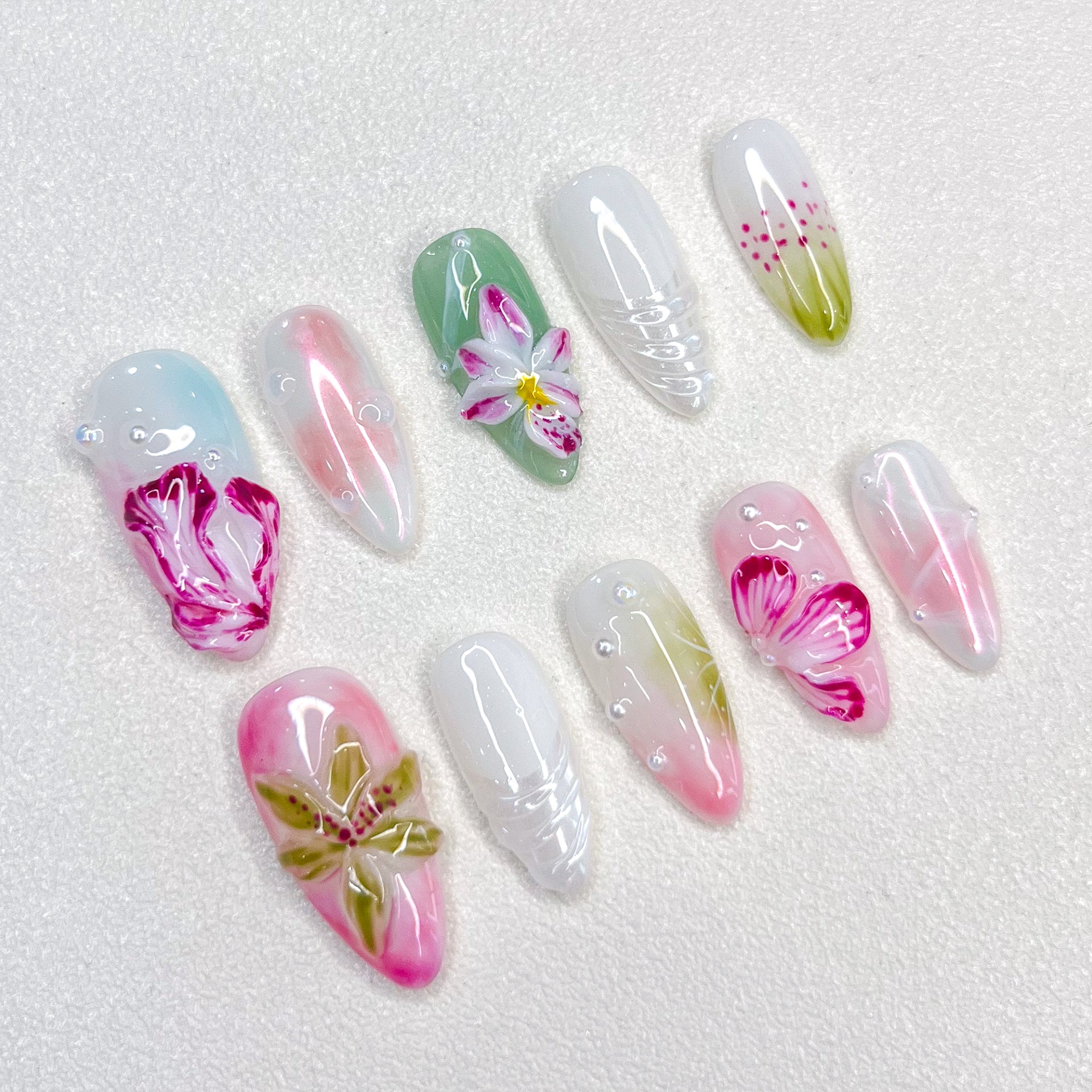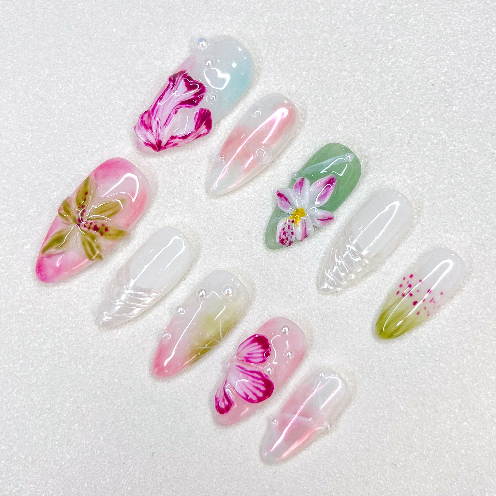 When applying, place the press-on about 2mm away from your cuticle, then press down and gently push back for a secure fit.