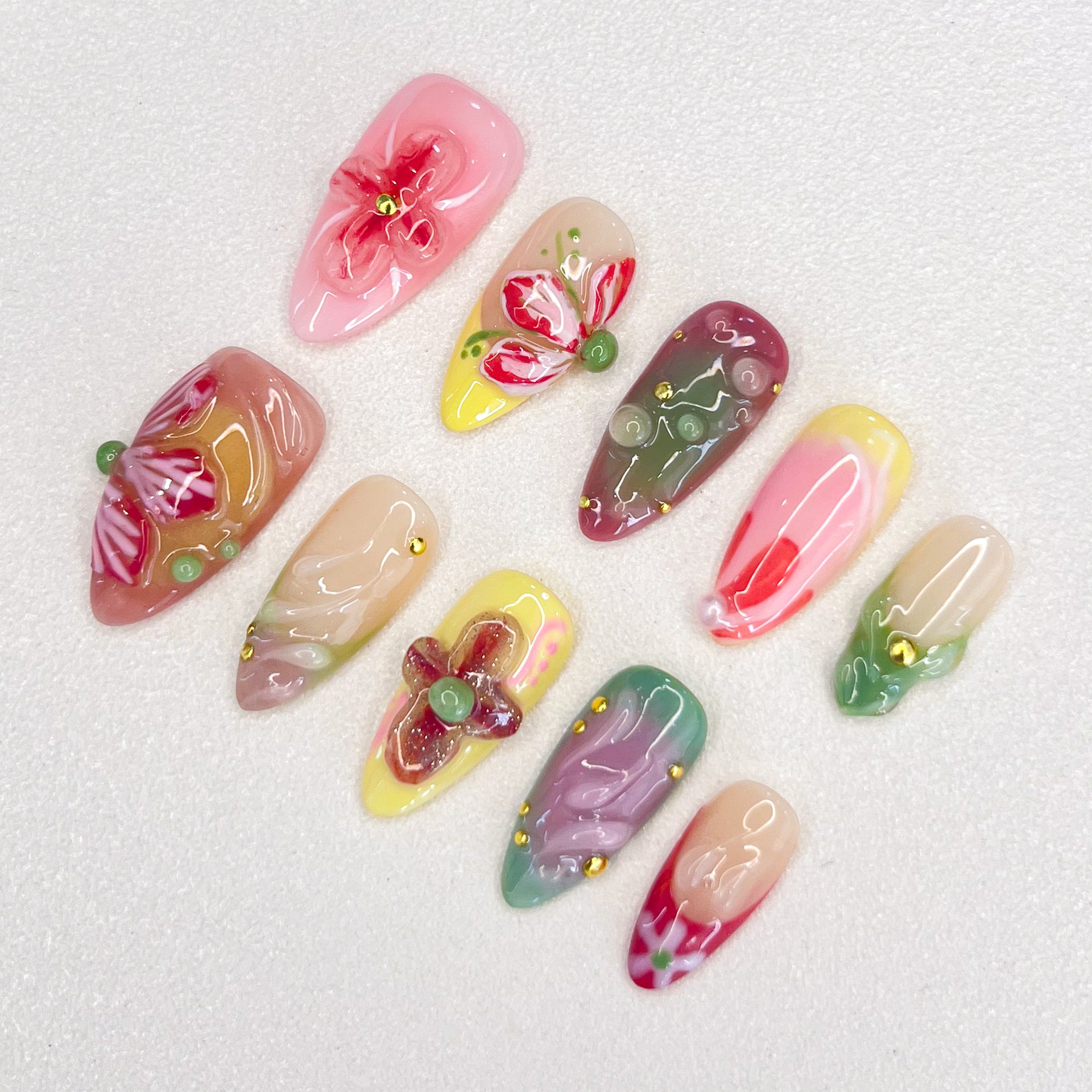 When applying, place the press-on about 2mm away from your cuticle, then press down and gently push back for a secure fit.