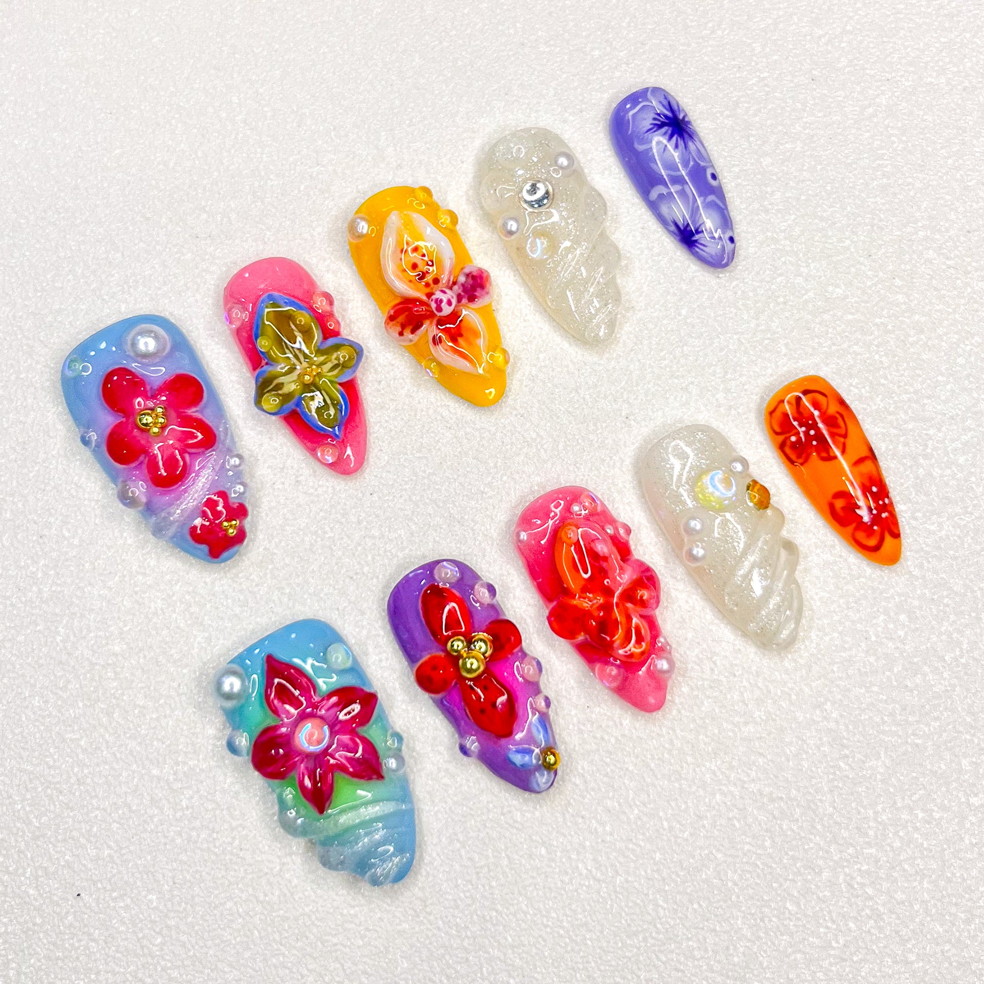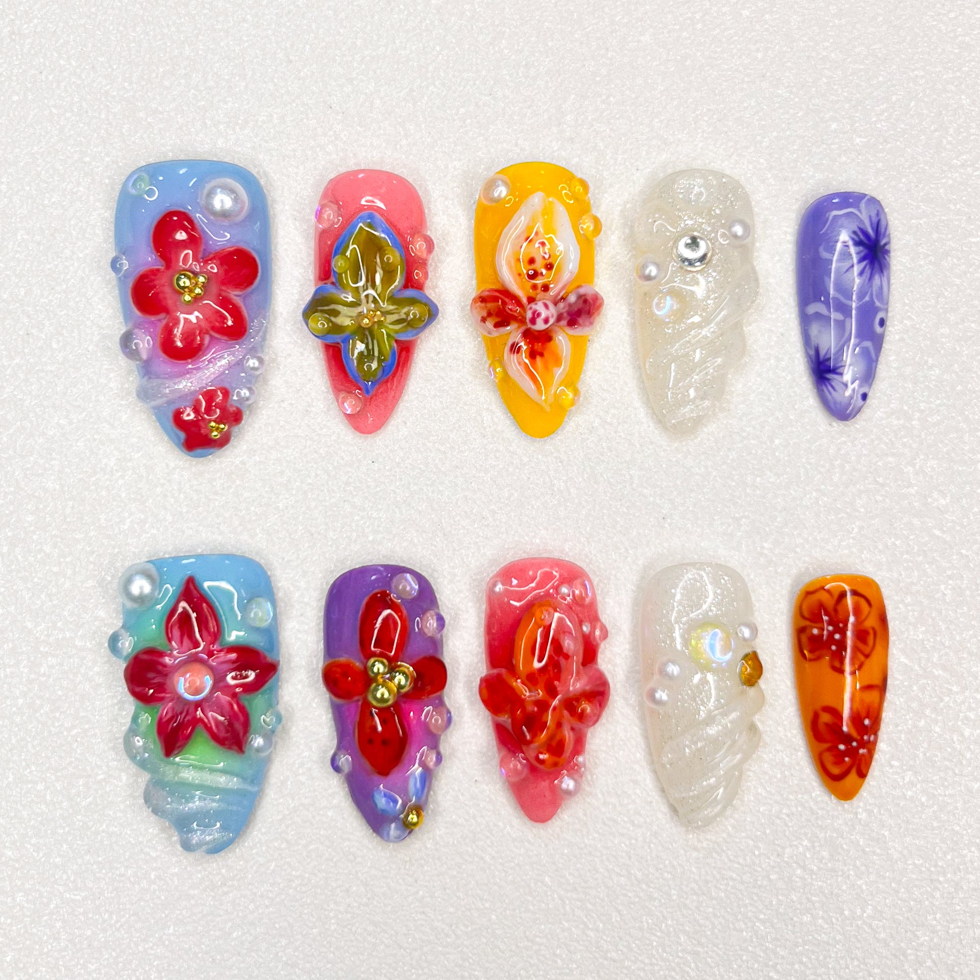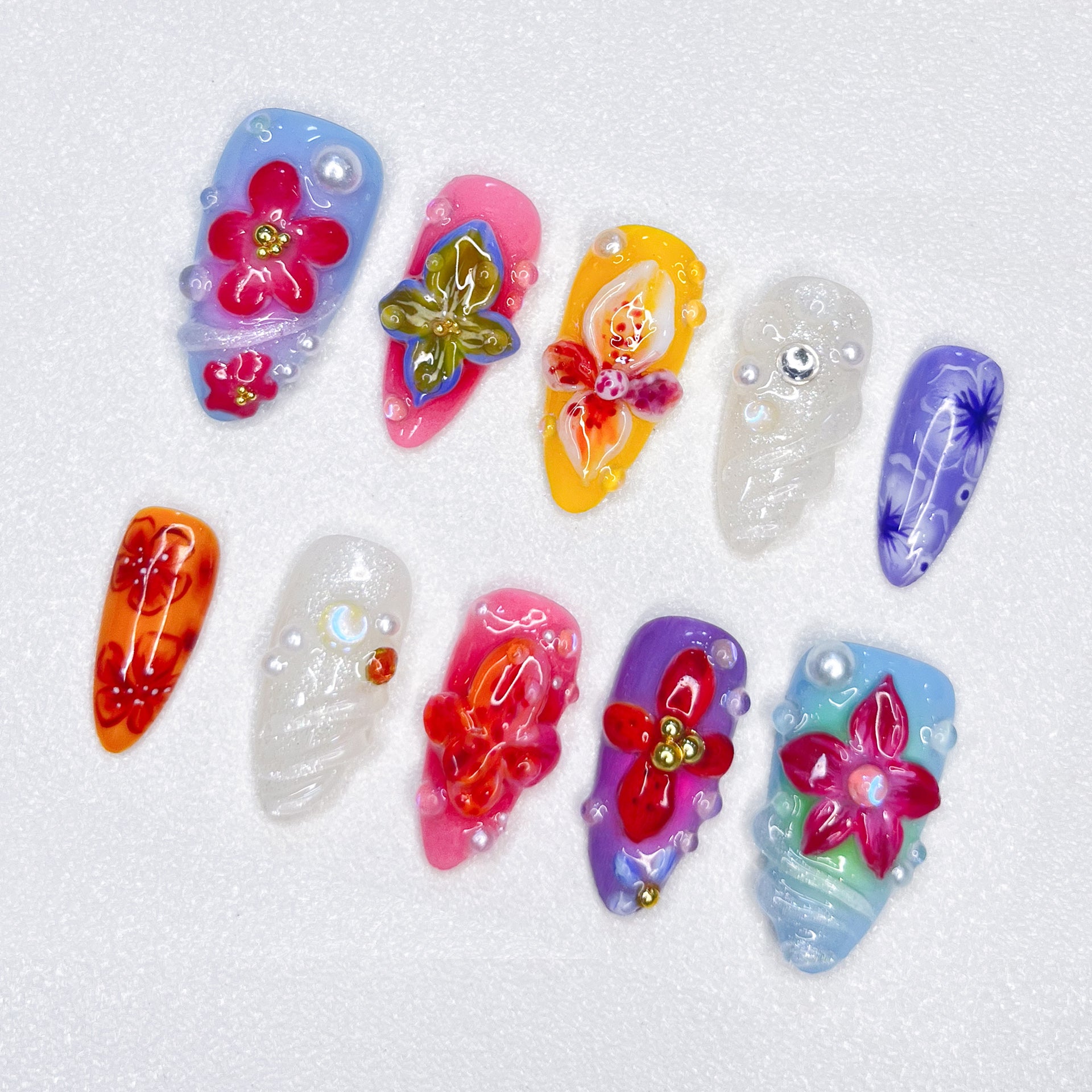 Design Concept: Where the fragrant lavender meets the whispers of the ocean, red blossoms bloom amidst delicate seashells, creating a serene escape on your fingertips.