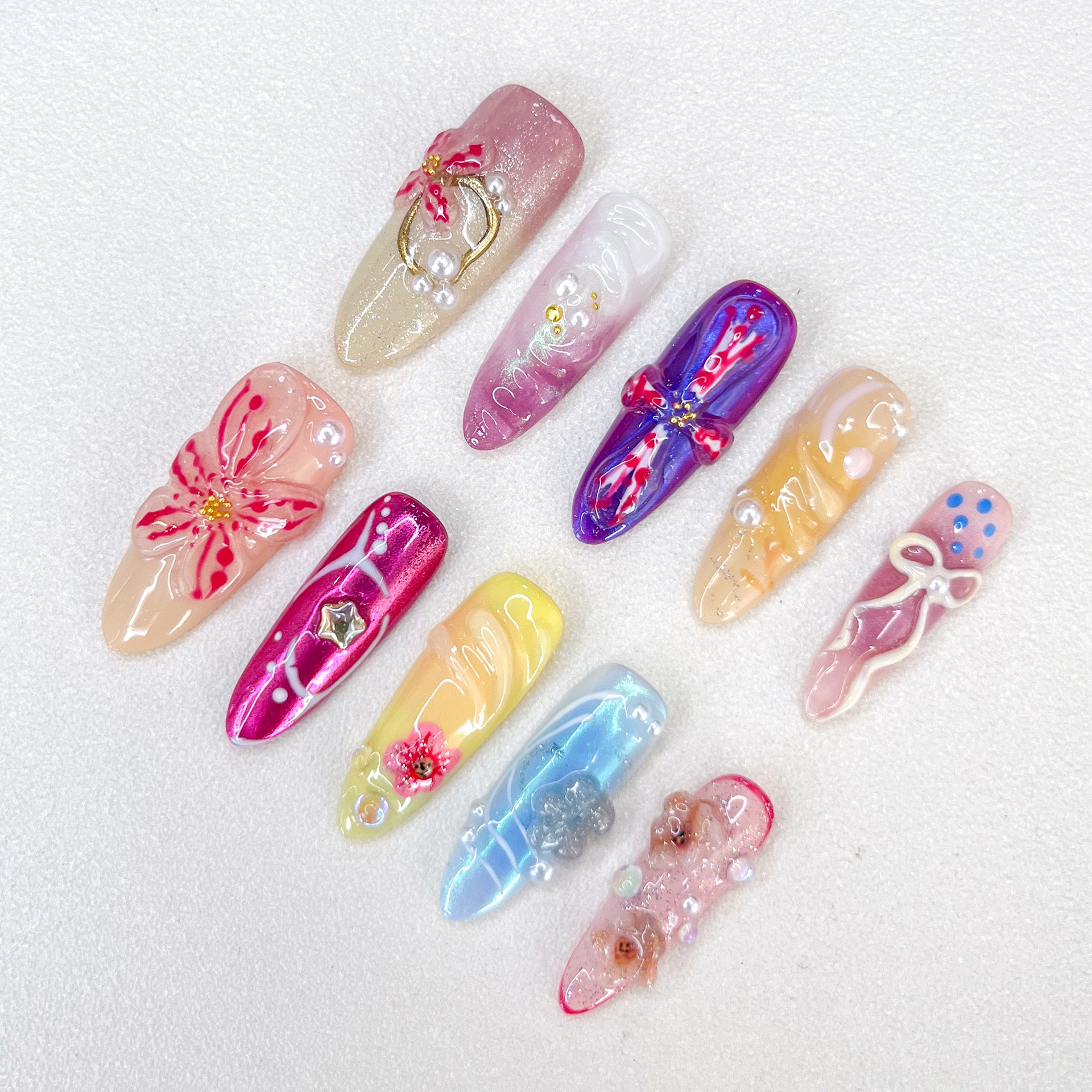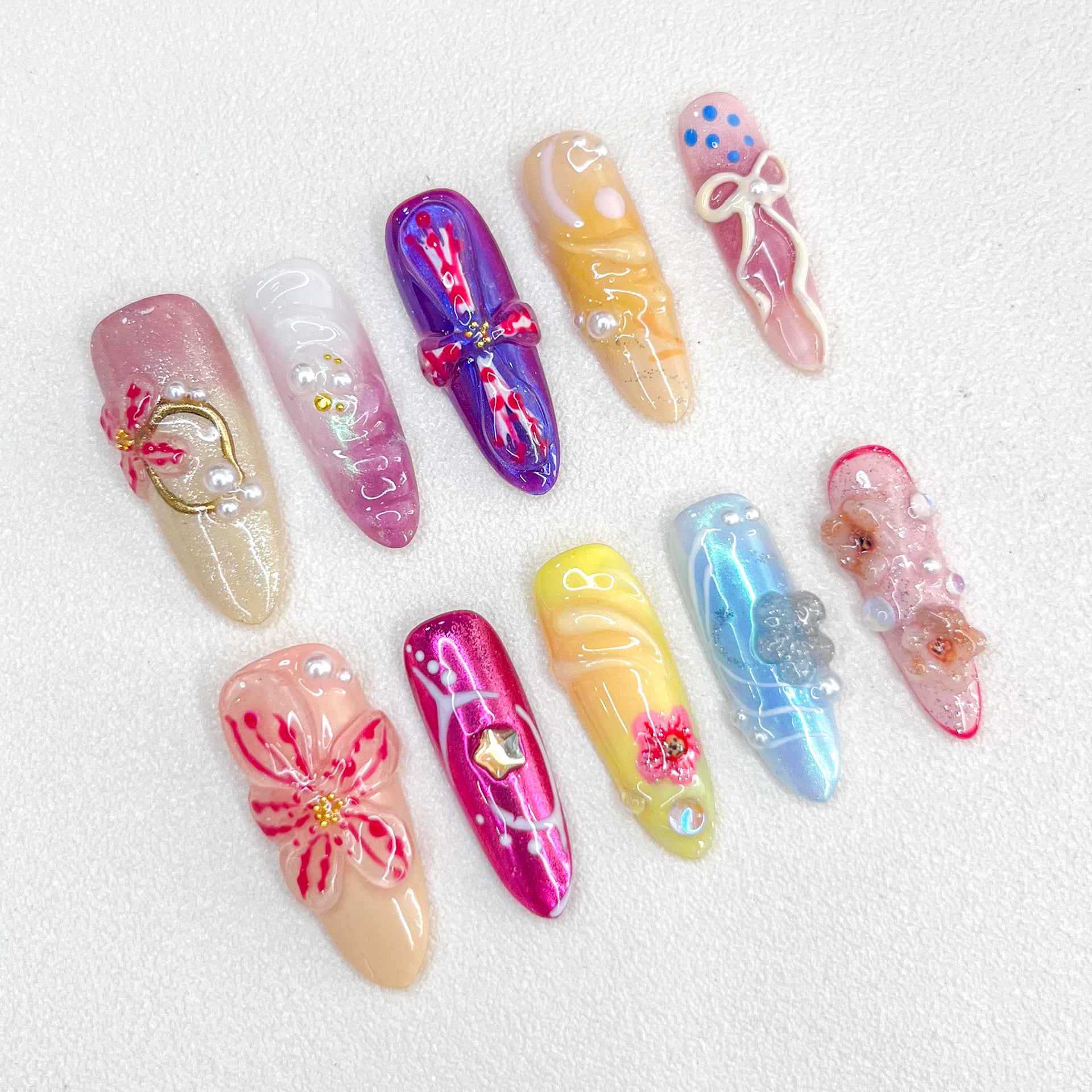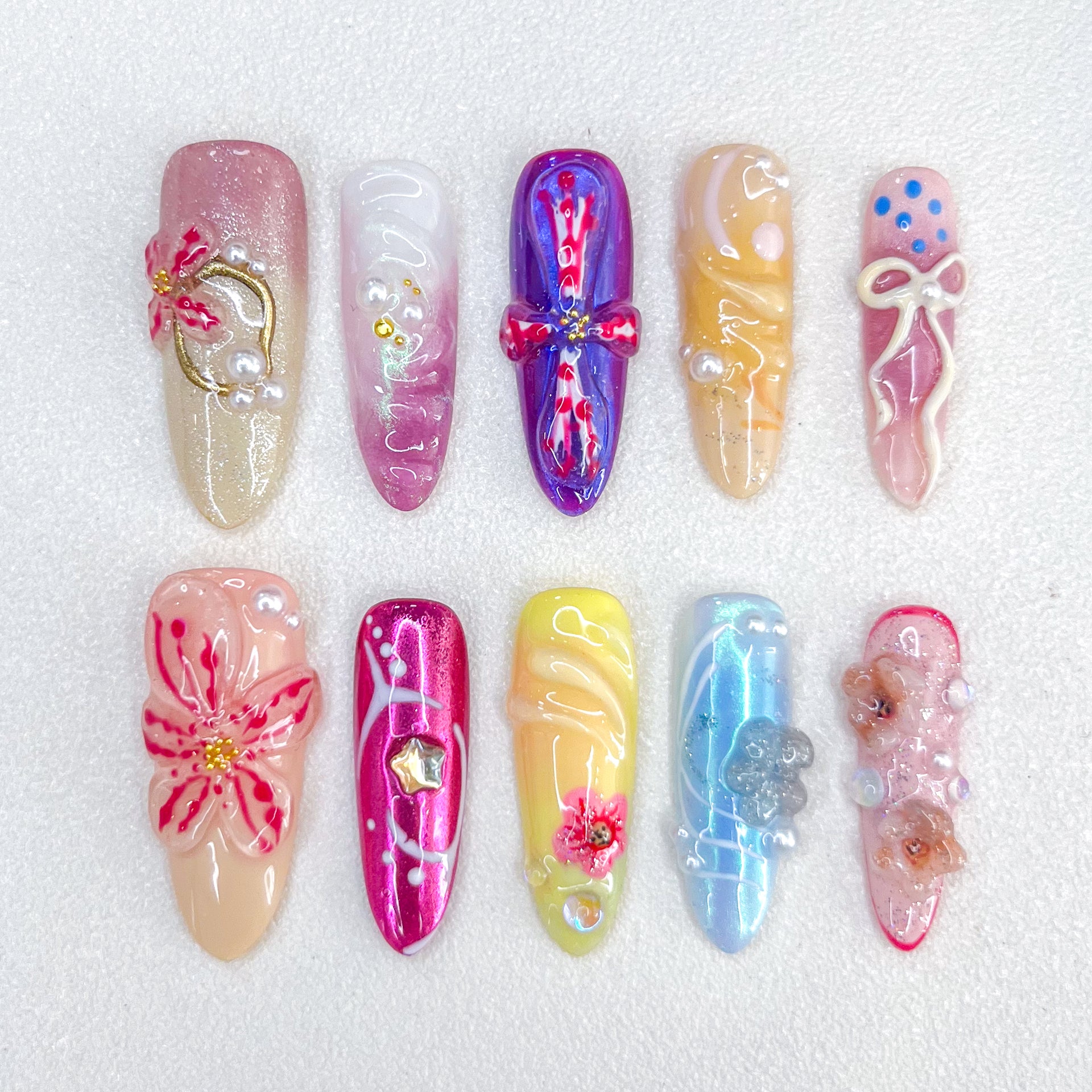 When applying, place the press-on about 2mm away from your cuticle, then press down and gently push back for a secure fit.