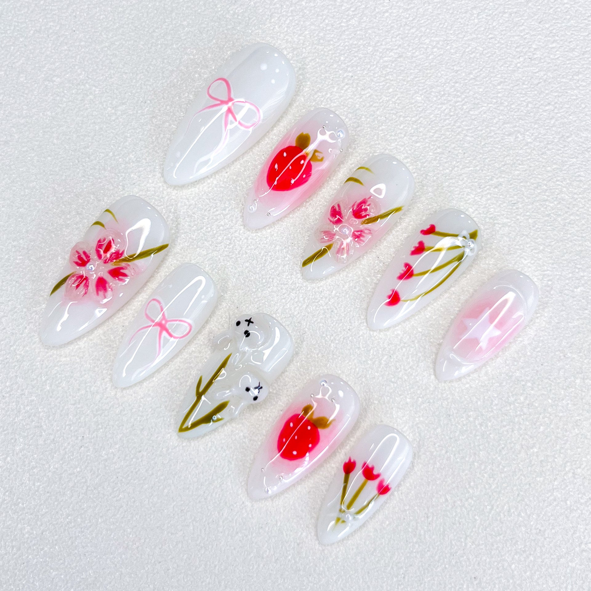 Design Concept: Immerse yourself in the sweet serenity of Peach Blossom Bliss. This design combines the delicate beauty of peach blossoms with a touch of sugary sweetness, creating a dreamy and enchanting look that’s as charming as a springtime garden.