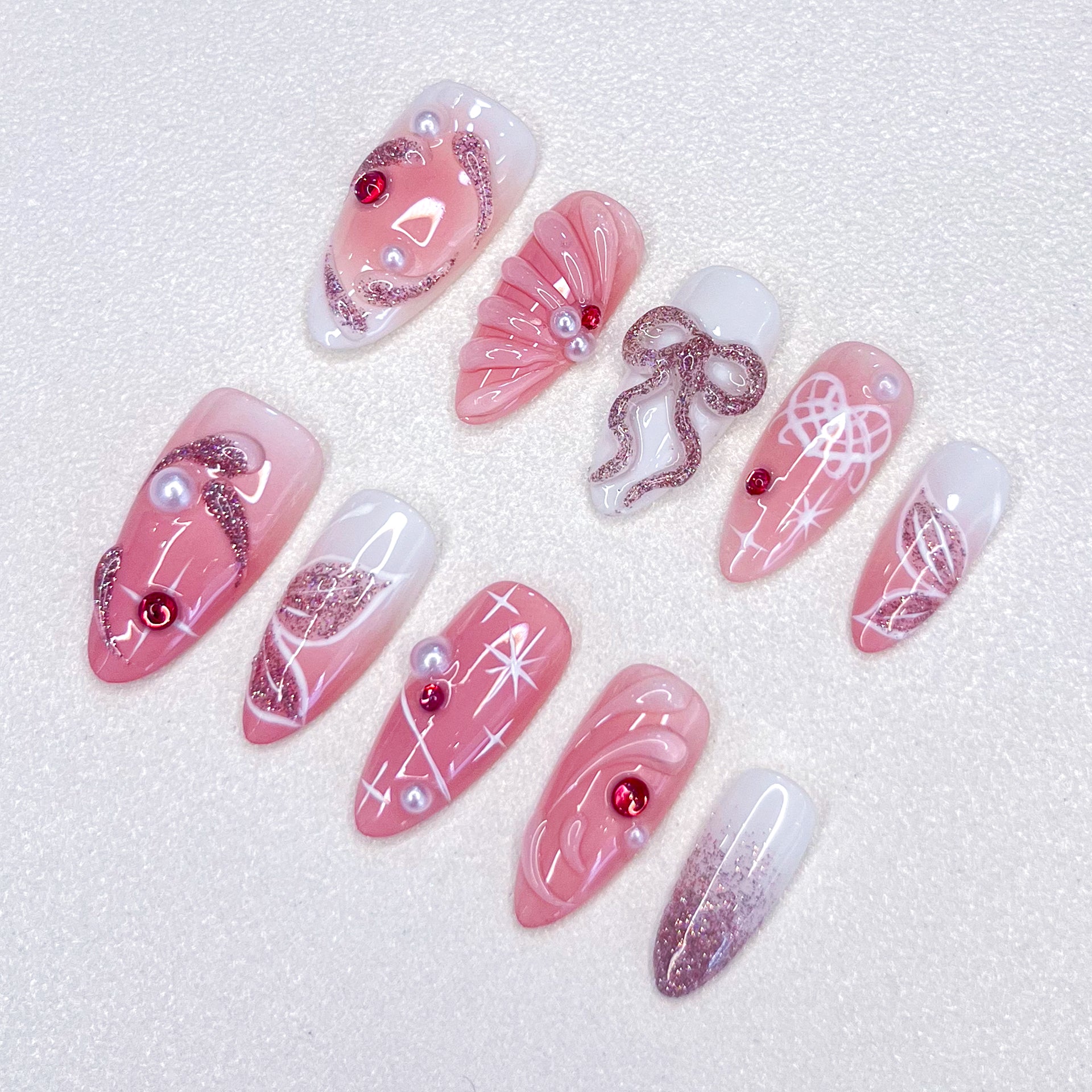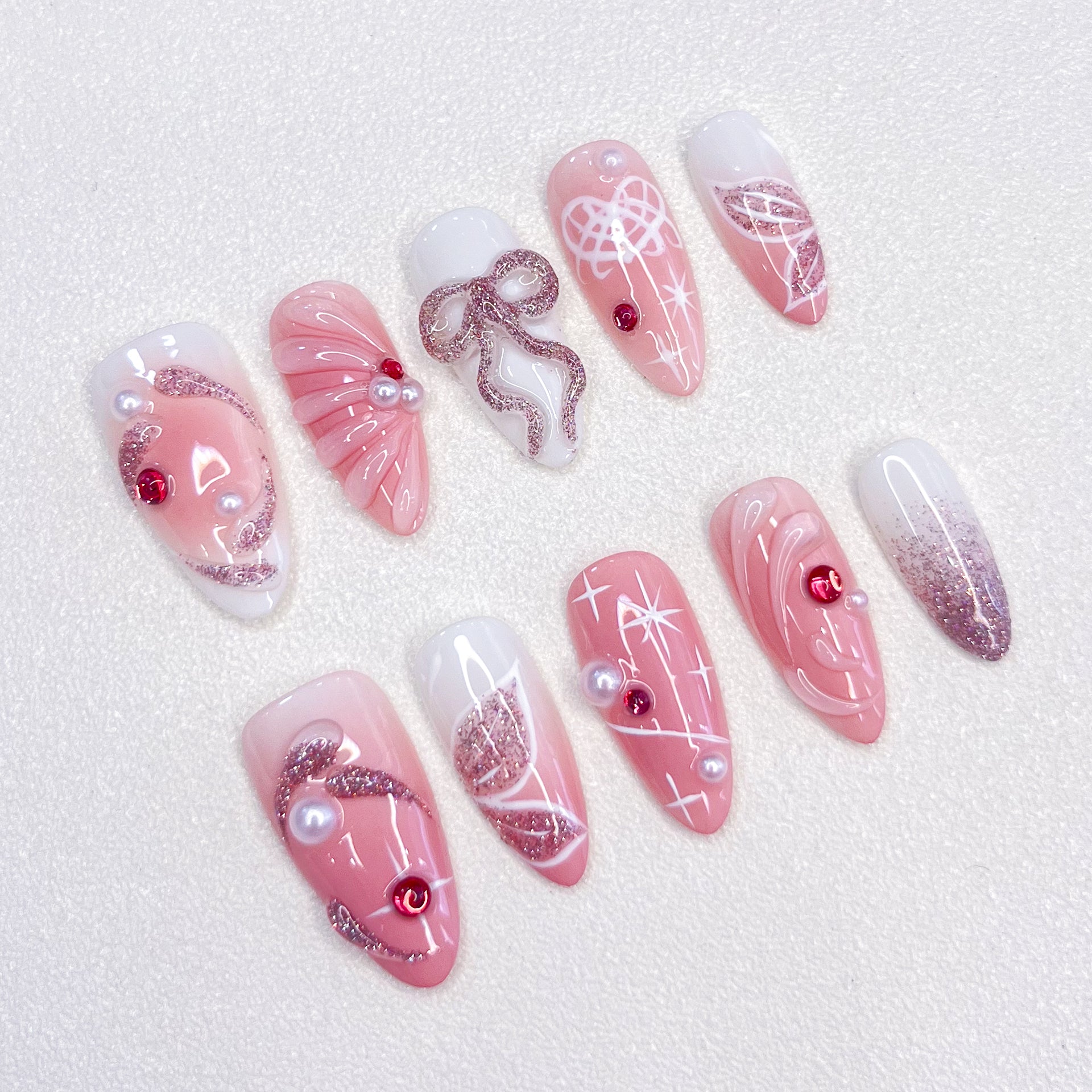 Design Concept: Immerse your nails in a dreamy blend of pink and sparkle, where each stroke of delicate shimmer brings a touch of enchanting elegance and whimsy to your fingertips.