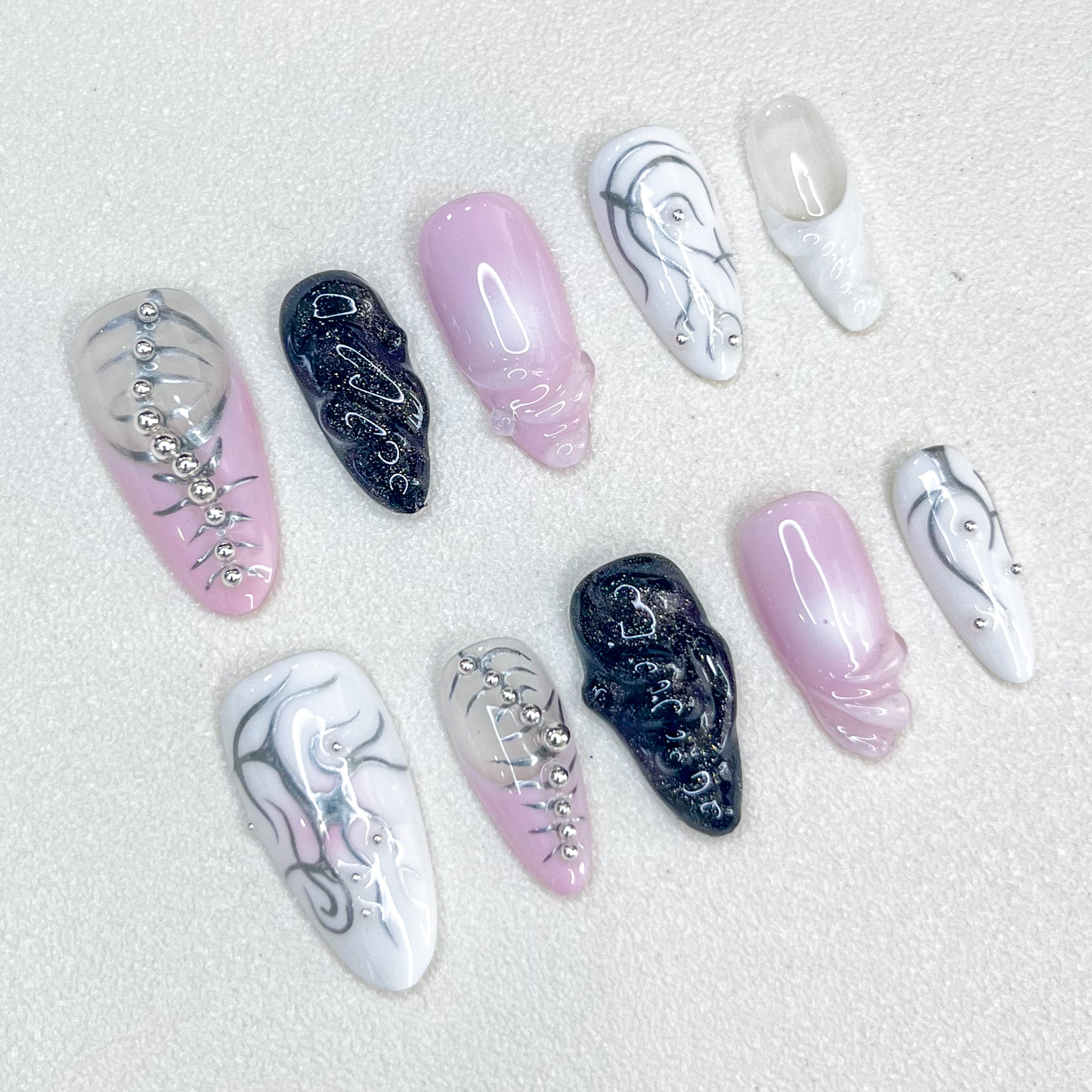 Design Concept: Bold, fierce, and unapologetically chic. This set combines pink, silver, and black for the ultimate "baddie" vibe. It's spicy, it's sleek, and it's ready to slay!