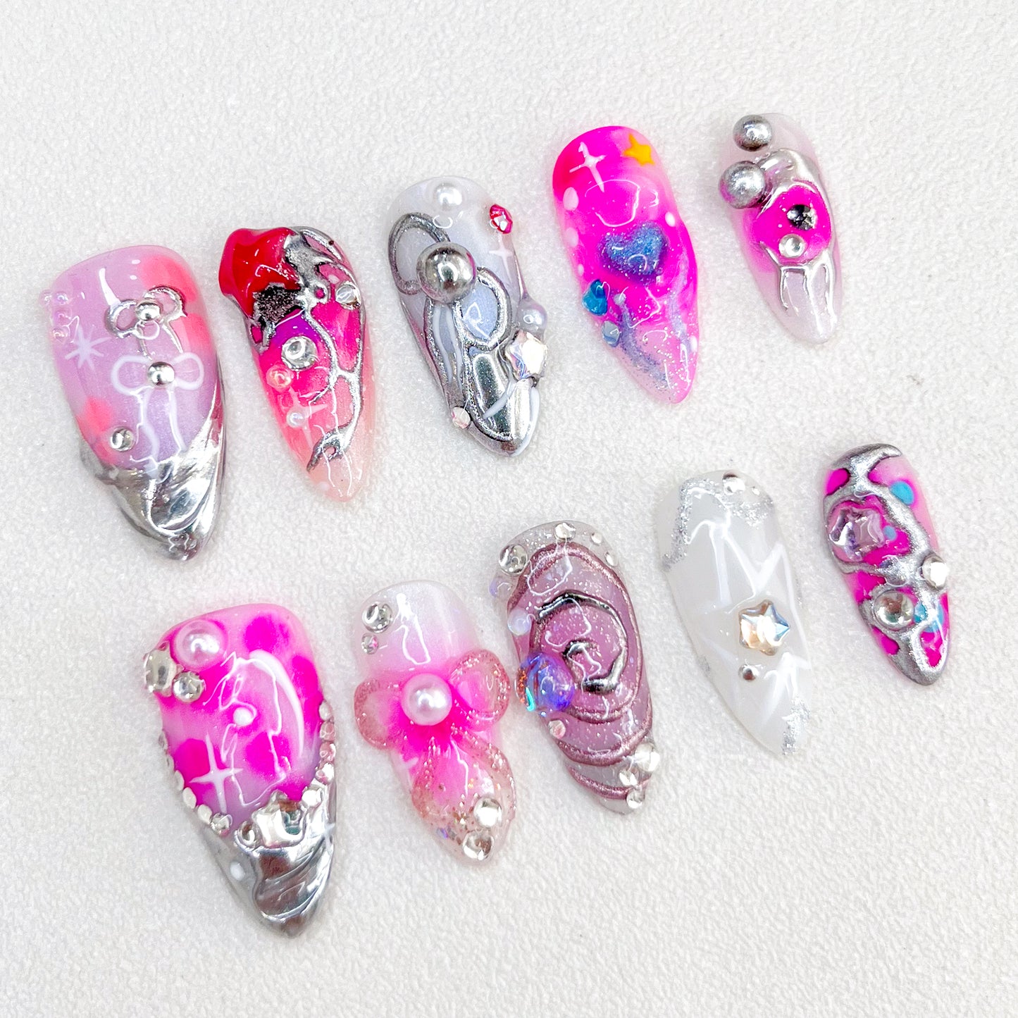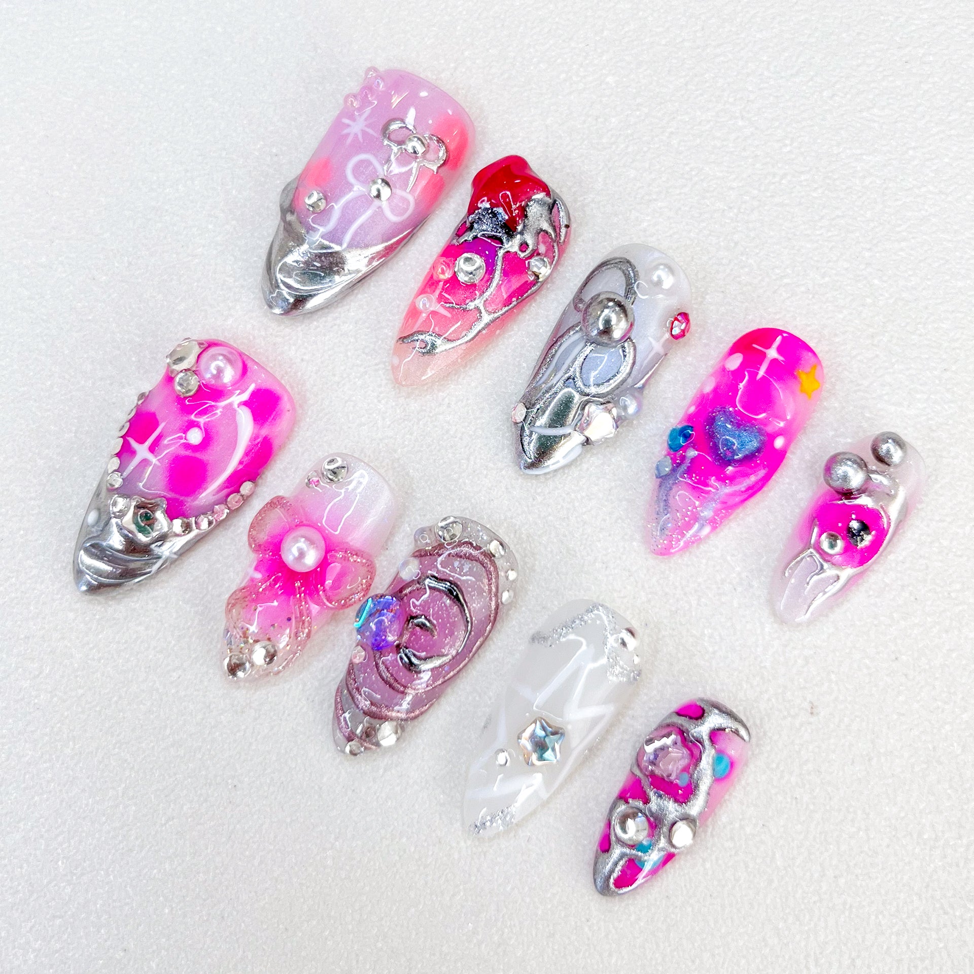Design Concept: Ignite your look with bold pink and sparkling silver, designed for the ultimate Spicy Barbie. Let your nails radiate with sizzling energy and vibrant confidence.