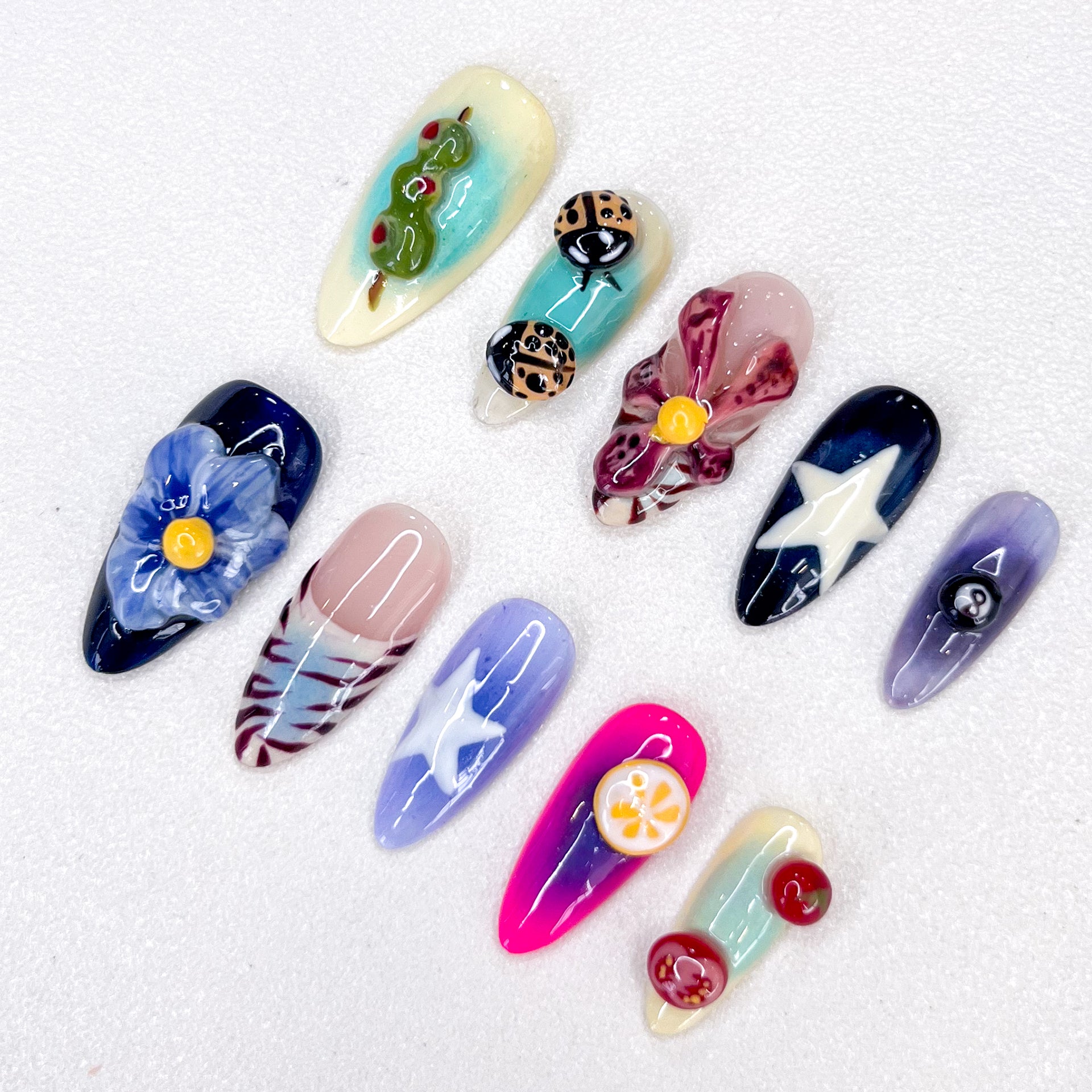 When applying, place the press-on about 2mm away from your cuticle, then press down and gently push back for a secure fit.