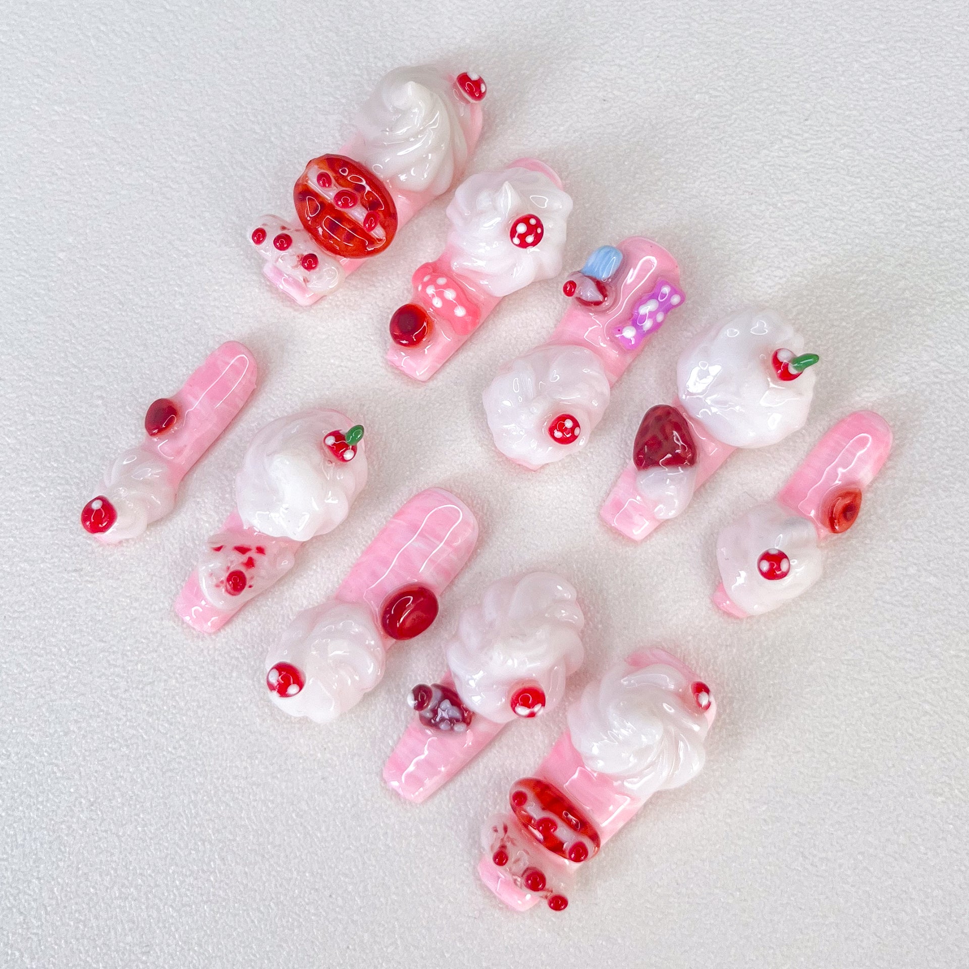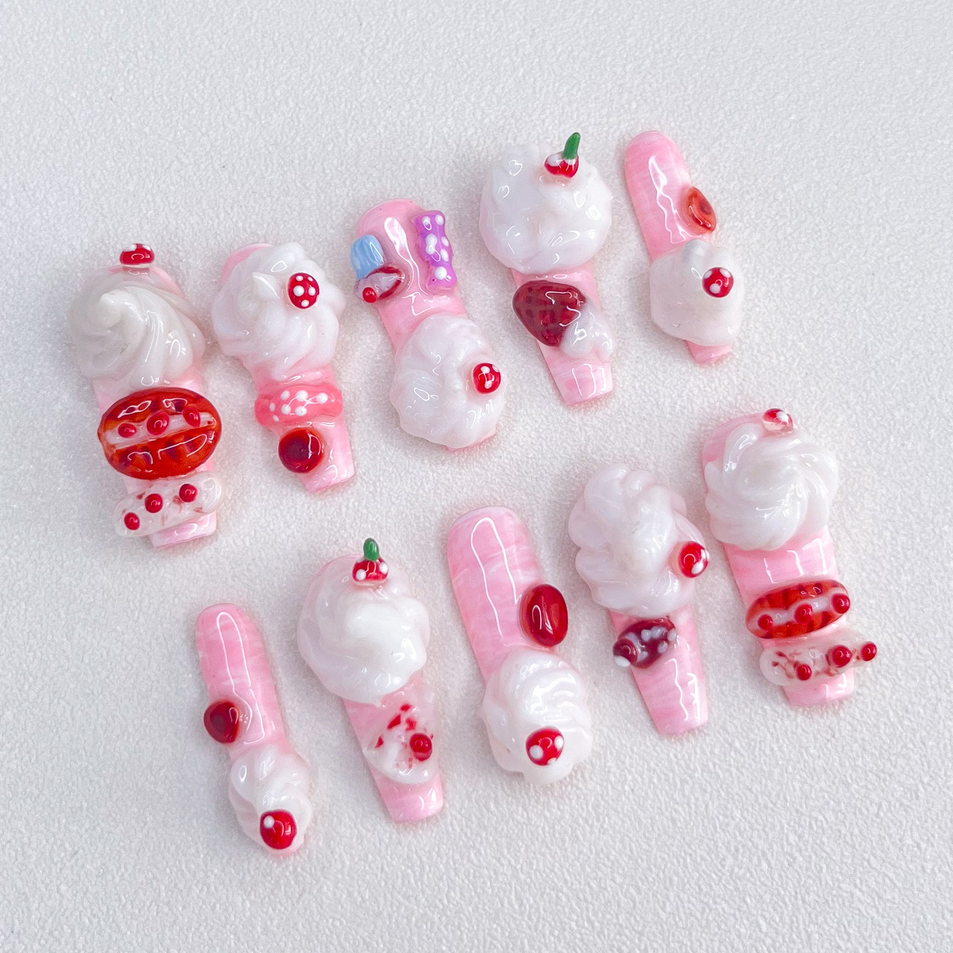 Design Concept: Indulge in the sweetness of summer with Strawberry Ice Cream. This charming design captures the playful essence of strawberry pink swirls, bringing a delightful chill to your fingertips.
